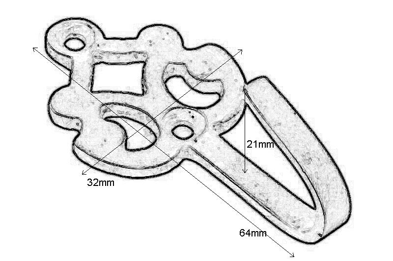 Haken Messing poliert. Tiefe 21mm, 32x64mm