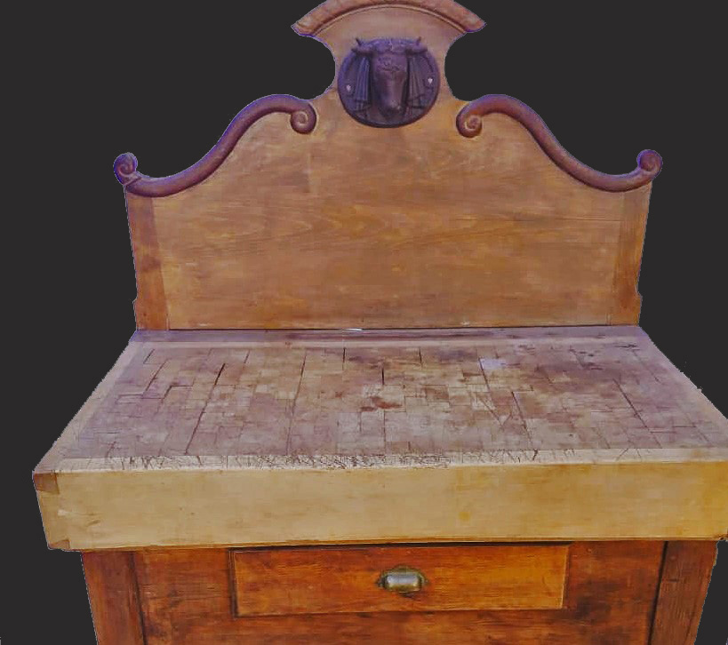Ein Ochsenkopf wurde oft als Dekoration für einen französischen Hackklotz verwendet.